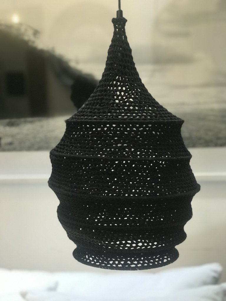 - > LAMPARA TEJIDA CON HILO NEGRA 30CM